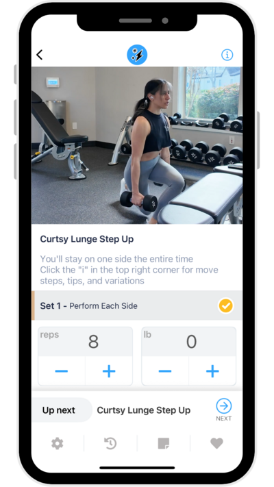 I love how accessible and flexible the workouts [in the app] are! It has allowed me to feel confident and comfortable walking into a gym weight room, knowing I have a plan and guidance in my hand, while also being modifiable enough that I can do the workouts at home with my very small home gym when I need to.